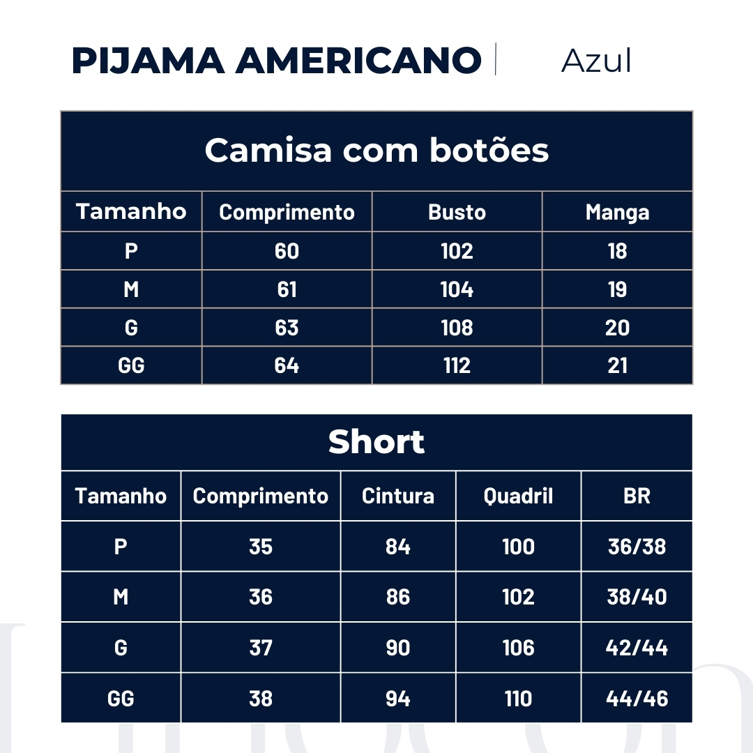 Nosso Pijama Americano Azul é a combinação perfeita de elegância e simplicidade. Clean e sofisticado, esse conjunto foi pensado para te proporcionar conforto e estilo em qualquer momento.